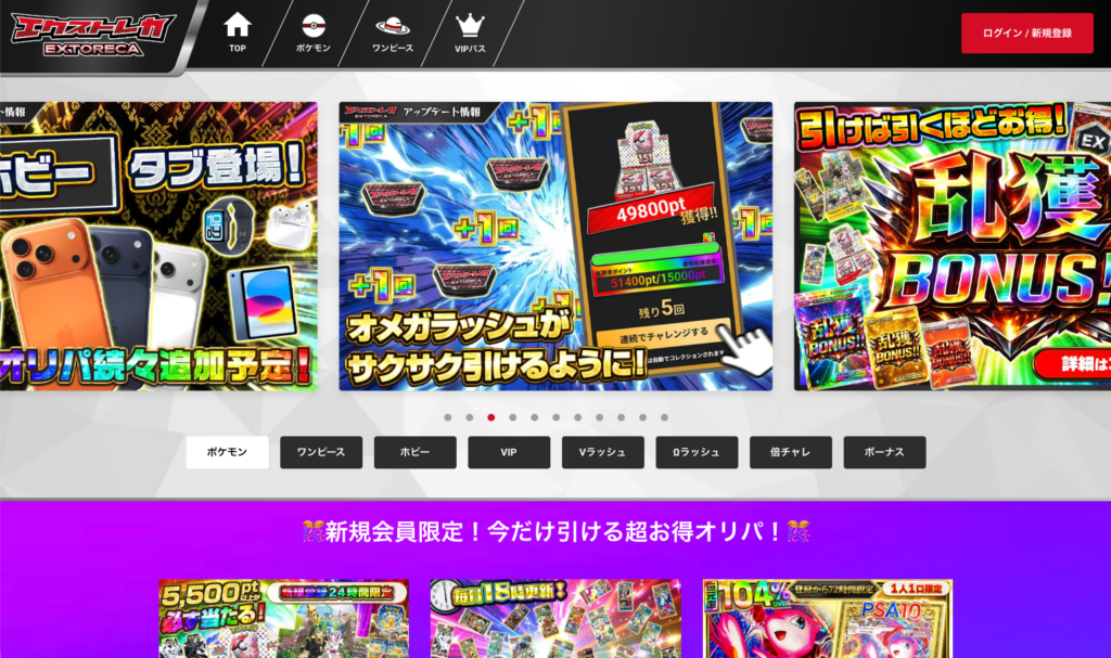 還元率95〜100%と高水準で、イベント時には100%越えの激熱オリパも登場。