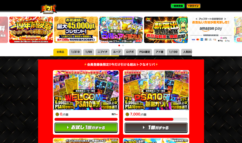 ポケパ365は、PSA鑑定品のアド確定オリパを新規限定で提供しているオンラインオリパサービスです。